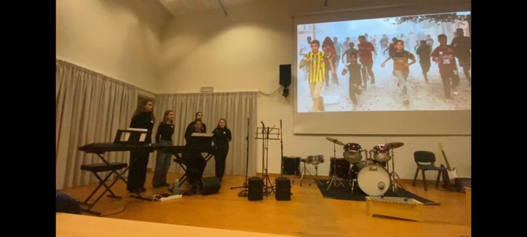No dia 9 de dezembro, pelas 10.05h no auditório da Escola Secundária Fernando Lopes Graça, as turmas 7.ºA e 12.ºM apresentaram duas músicas “Imagine” de John Lennon (7.ºA) e “Para mudar o destino”, canção original composta pelas alunas da turma 12.ºM. Assistiram a esta apresentação as turmas 7.ºC e 7.ºD e os professores acompanhantes. Esta apresentação decorreu no âmbito da Semana dos Direitos Humanos, do plano anual de atividades e do plano cultural de escola.