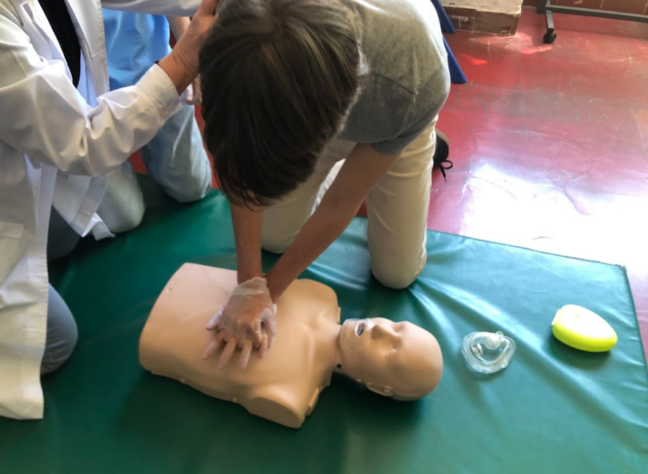Primeiros socorros: alunos do 11ºL, do Curso Técnico Auxiliar e Saúde, realizaram a demonstração e treino aos alunos das turmas do 9º ano de Santo António e Fernando Lopes-Graça. Todos tiveram oportunidade de aprender o Sistema Integrado de Emergência Médica, treinar as manobras de Suporte Básico de Vida com o manequim, colocar a vítima em posição lateral de segurança e fazer a manobra de Heimlich. Todos aprenderam e treinaram o procedimento e a importância da cadeia de sobrevivência em vítimas conscientes e inconscientes.